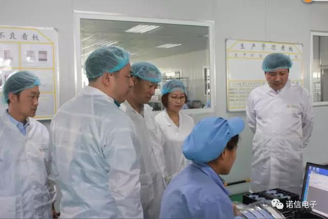 在公司總經(jīng)理冉檸愷、常務(wù)副總經(jīng)理高巧娟的陪同帶領(lǐng)下,一行人參觀了公司生產(chǎn)車間、研發(fā)實驗室等。在參觀過程中,冉總、高總詳細的介紹了諾信電子發(fā)展歷程和近年來的生產(chǎn)經(jīng)營情況,并著重介紹了公司未來發(fā)展規(guī)劃。