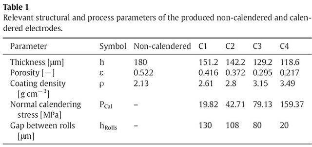 壓實對極片微結構的控制起決定性作用,影響電池的電化學性能。輥壓是聚合物鋰電池極片最常用的壓實工藝,相對于其他工藝過程,輥壓對極片孔洞結構的改變巨大,而且也會影響導電劑的分布狀態(tài),從而影響電池的電化學性能。為了獲得最優(yōu)化的孔洞結構,充分認識和理解輥壓壓實工藝過程十分重要。